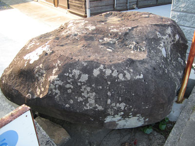 亀石という地名の起こりは、この近くのバス停に亀の甲羅(こうら)に似ている石が置いてあるから、と言われています。